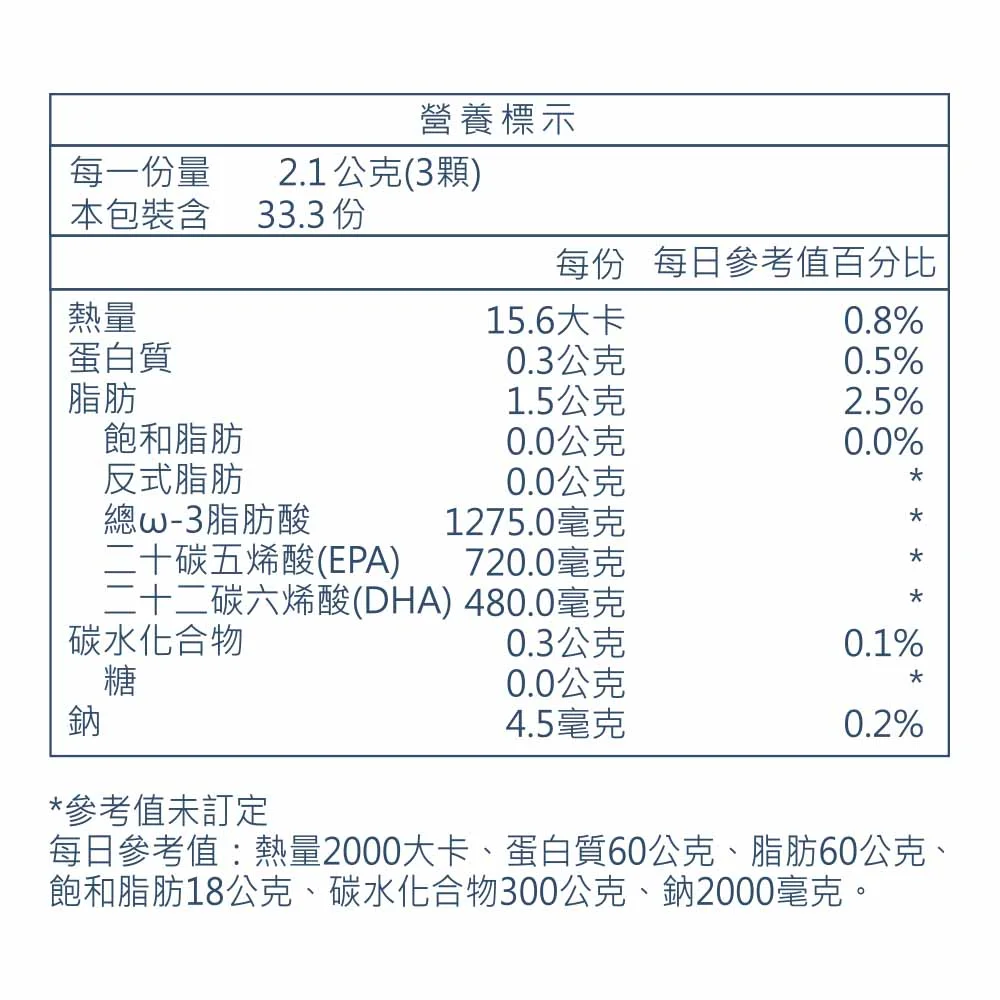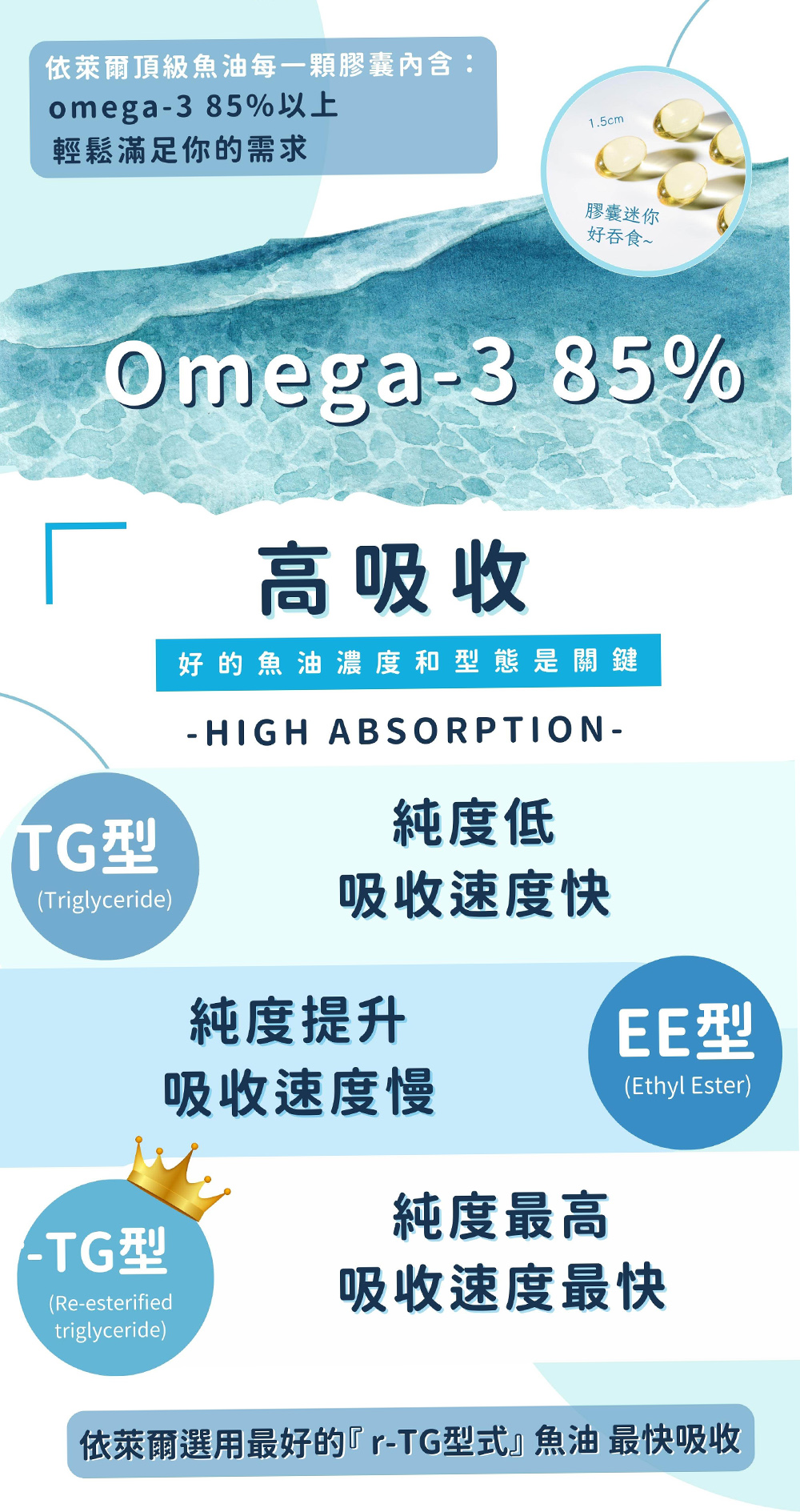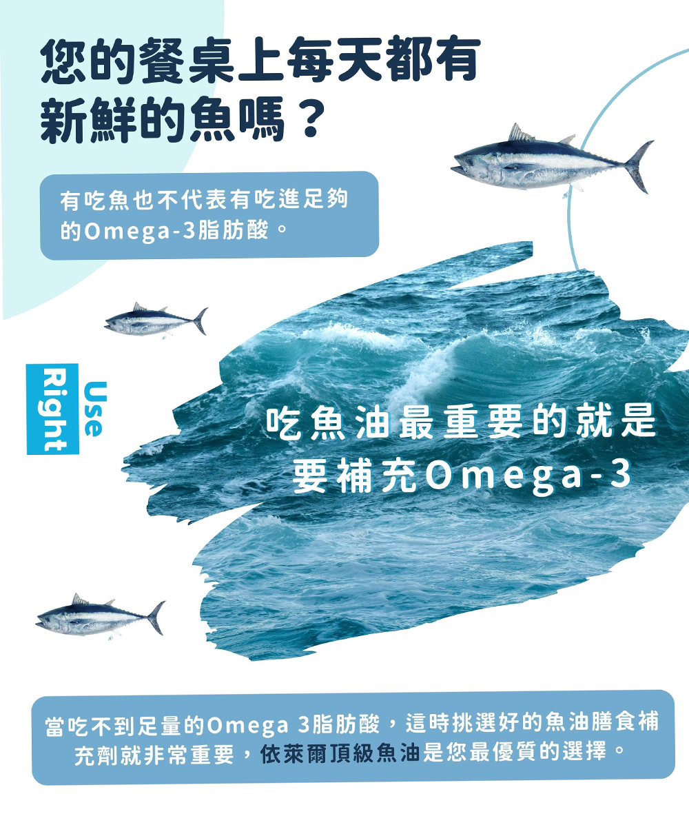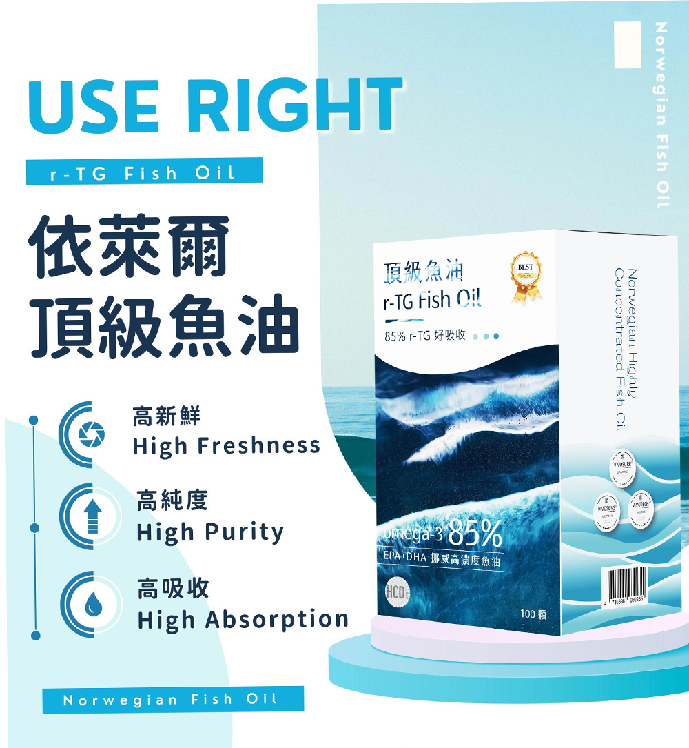 嚴選Omega-3 脂肪酸高達85%以上的高濃度魚油
